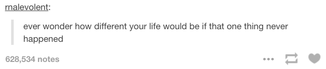 If my father didn’t die, if I didn’t go to St. Scho. If I didn’t throw that letter or laugh at someone’s words. But mostly I’m wondering what my life would have been like, had I not discovered erotic fanfiction at age 13. Or something.