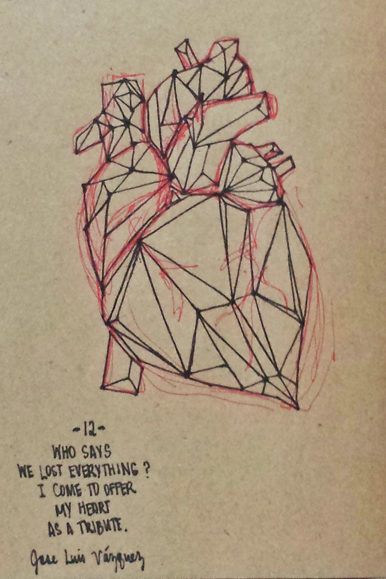 my soul is shivering, and everything else trembles with it. the sky cracks. the earth beneath me crumbles. and from here the next moment is undecided: my body struggles to breathe, aims to hyperventilate, longs to faint. i cannot stand. i am bodyless. i am, i am, i am. i am breaking apart. long ago i have known that i am not inhuman, not made of flesh and bones, that the pieces that make me are not so real. i am a creature stitched by words and made of figments, strong with dreams and weak to reality. intangible thing, me. and i am unraveling. who am i? what am i? is this universe mine, or am i of this universe? i ask, i ask. what happens when titans meet, when species converge and siblings surface? do we compete, do we love, do i love, do i die? have i been consumed by these tales of fiction and by this dishonest world? in the meeting of words, which words survive? i have lost myself. i think i have died. i am and i am not, me but not me, unwritten, rewritten and unknown. i should not be allowed to read poetry. i cannot know myself.