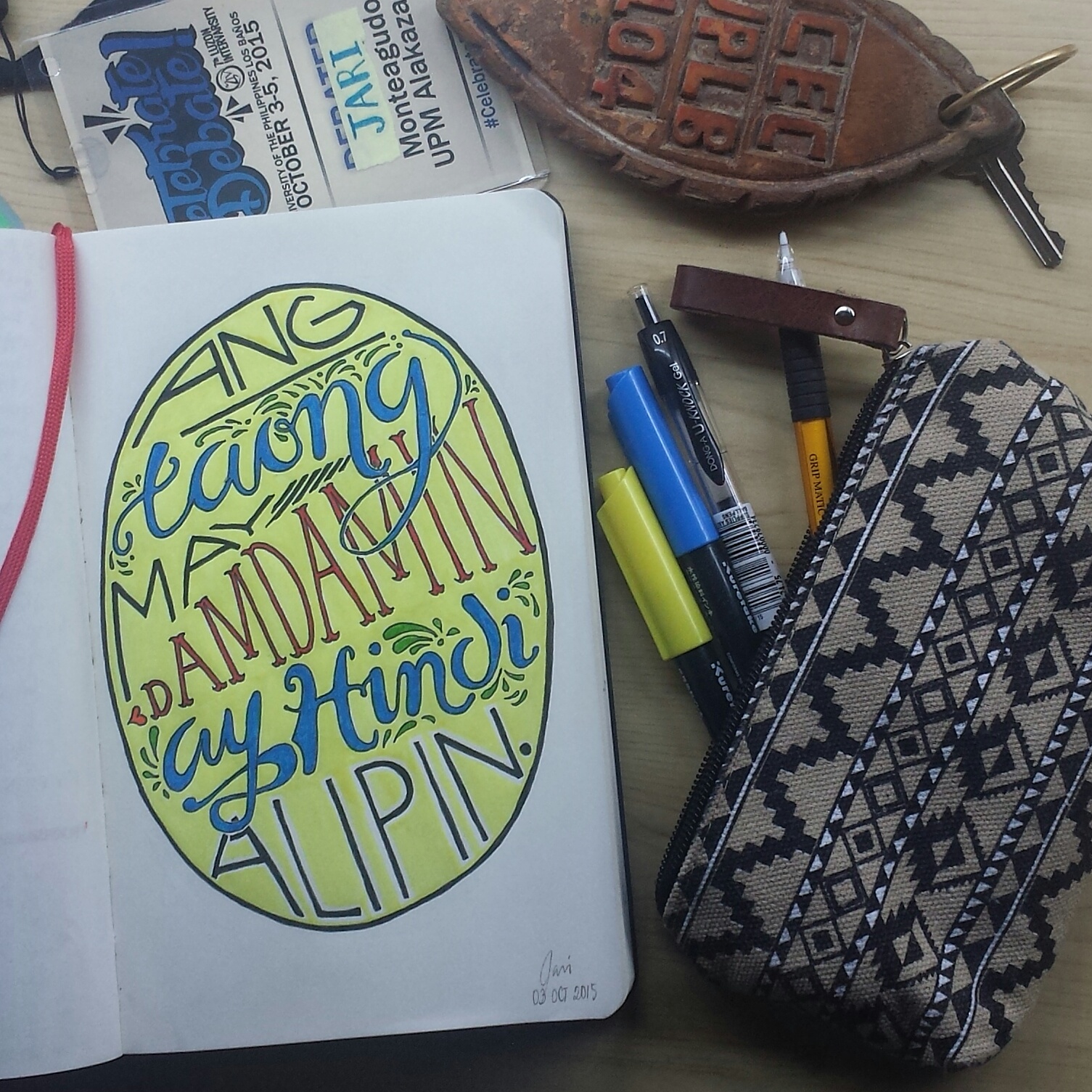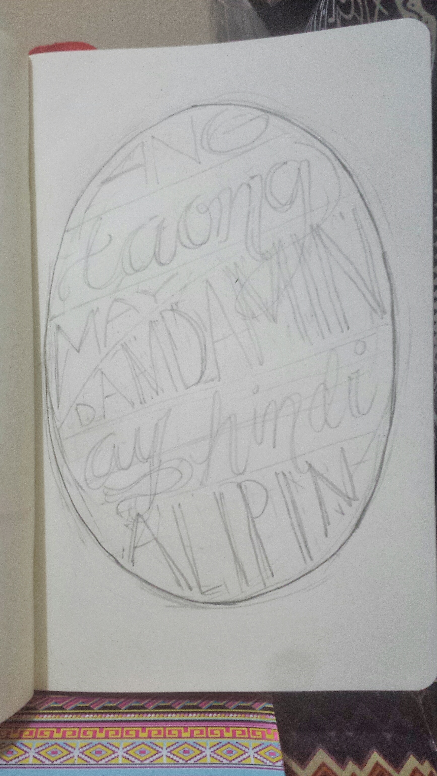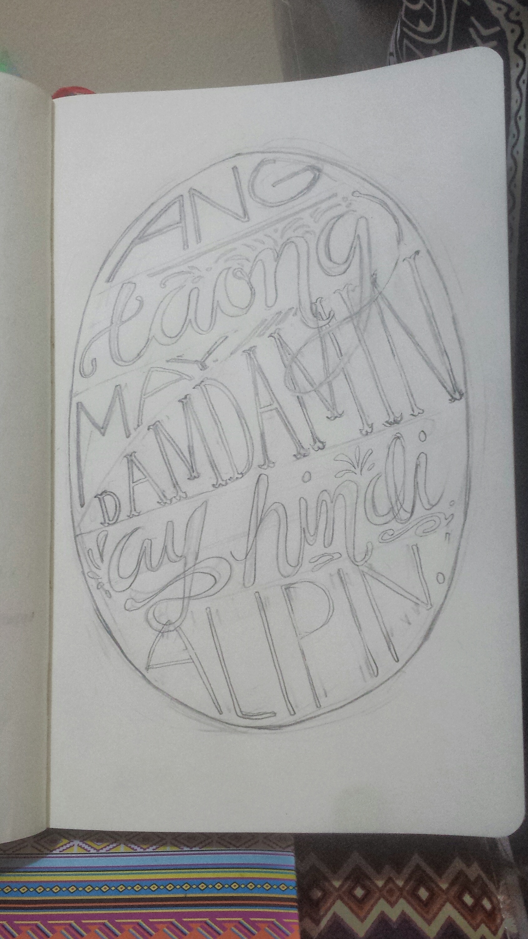 As I was finalizing the sketch, I added some decorations/ornaments and slightly changed some font styles to adjust the work’s focus (like in the word ‘damdamin’).
