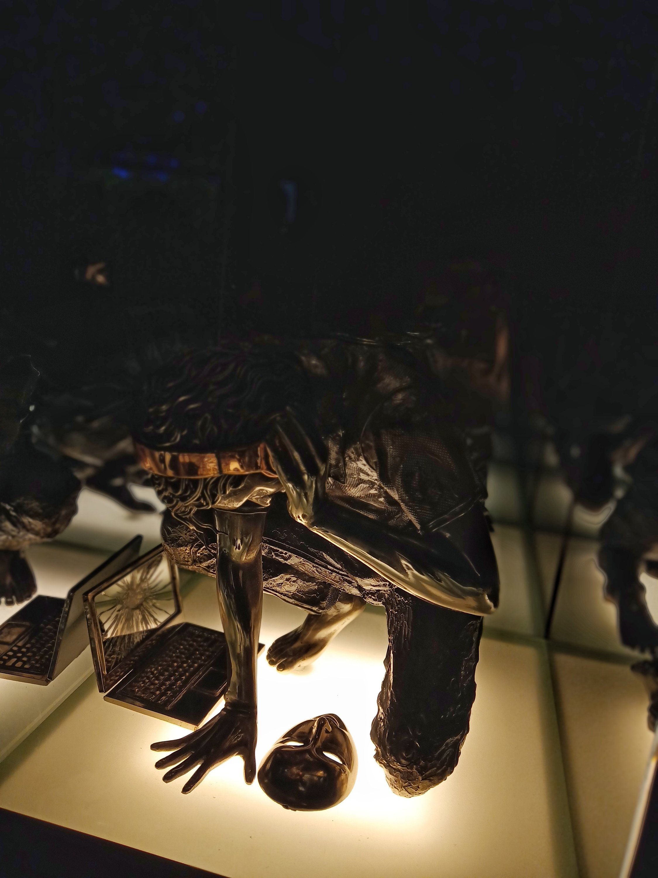 Artistically, there were only a few sculptures that really caught my eye. Most of them evoked the feeling of hyperawareness, claustrophobia and loneliness that comes with being too immersed with social media abuse.