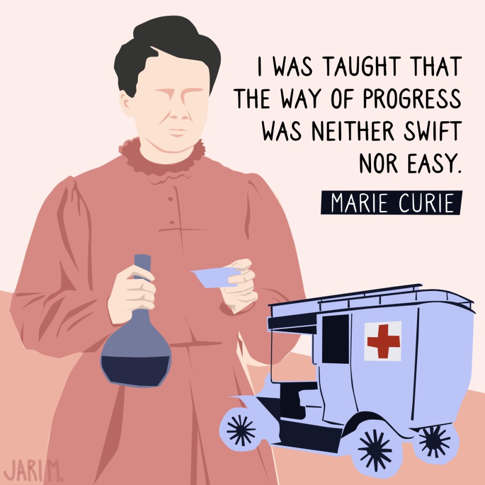 Marie Curie was a French-Polish scientist who co-discovered polonium and radium, developed remedial treatments for cancer, and invented “Petite Curies”, small mobile x-rays used in the First World War. She won the 1903 Nobel Prize in Physics and the 1911 Nobel Prize in Chemistry, which made her the first-ever recipient of two Nobel laureates. She died of aplastic anemia due to prolonged radiation exposure.