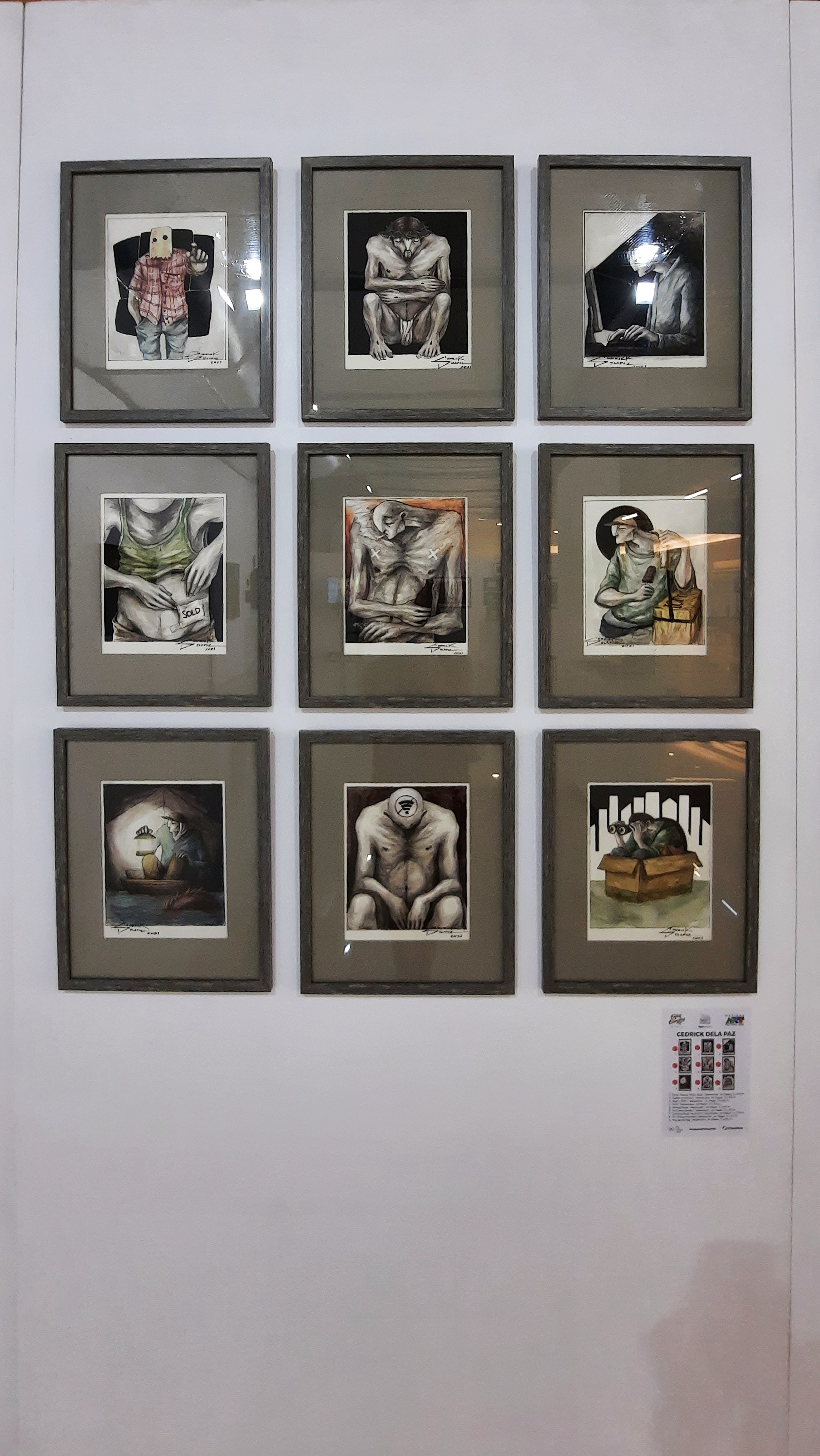 Cedrick Dela Paz, DC (Disconnected) (middle of last row), watercolor on paper. I was tired. I’m ready to consume.