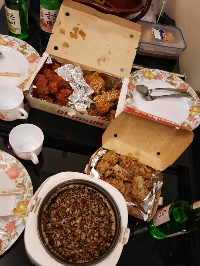 For the future, note to selves: this is the pose we’ll keep on recreating every couple of years or so, no matter where we are. Sans mask, hopefully. .KDINNER (with quinoa). Chicken and soju –what can be better than that? Apparently, soju with melona and sprite. Life = changed. .