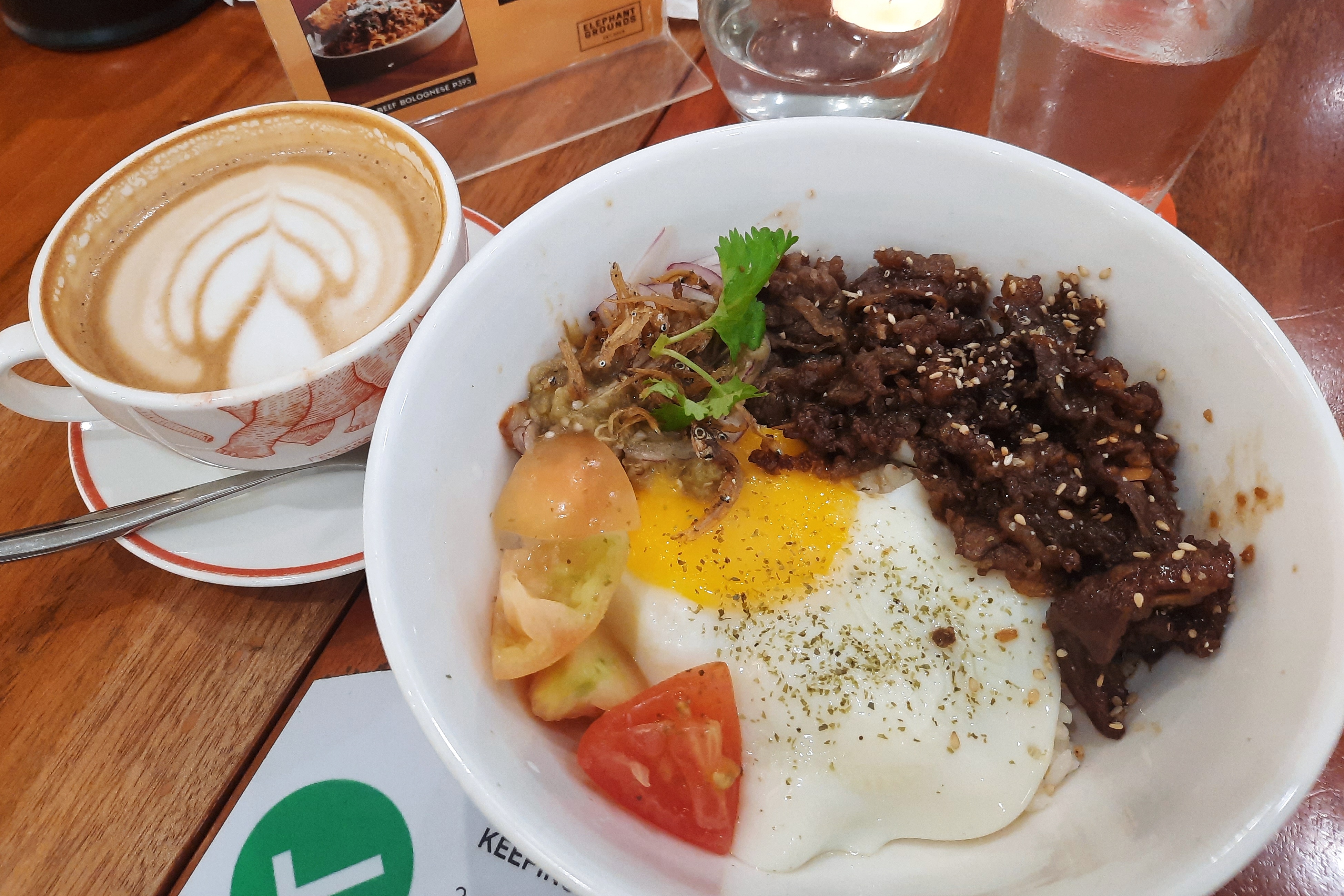 Catching up!!!!!! After X number of months just checking on each other over messenger and twitter (and a bit of instagram), we finally got to see each other in real life. My friend, let’s both stay healthy as much as possible. .Elephant grounds: bestselling vanilla cafe latte (with latte art of a cerebelllum? prostate? wait—) and a tapa donburi, which may just be a fancy and overloaded way of saying tapsilog. 10/10, would repeat though. .