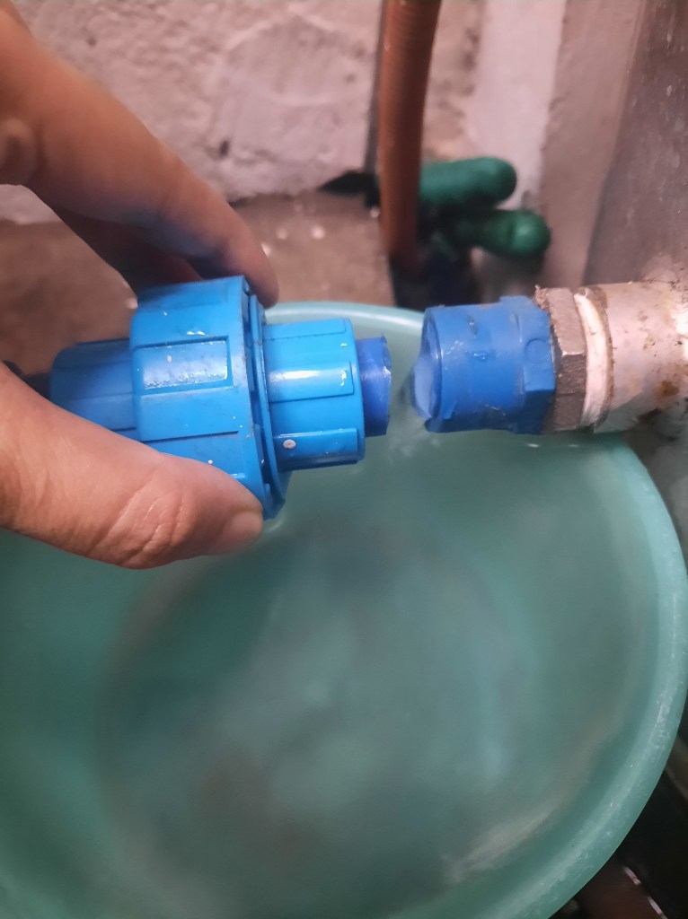 At first we thought it was another one of Maynilad’s (unfortunately not infrequent) service interruptions. But an inspection an hour or so later revealed this wasn’t the case —horror of horrors, we had one outright broken exposed pipe near our pressure tank, and another leaking pipe near our water meter.