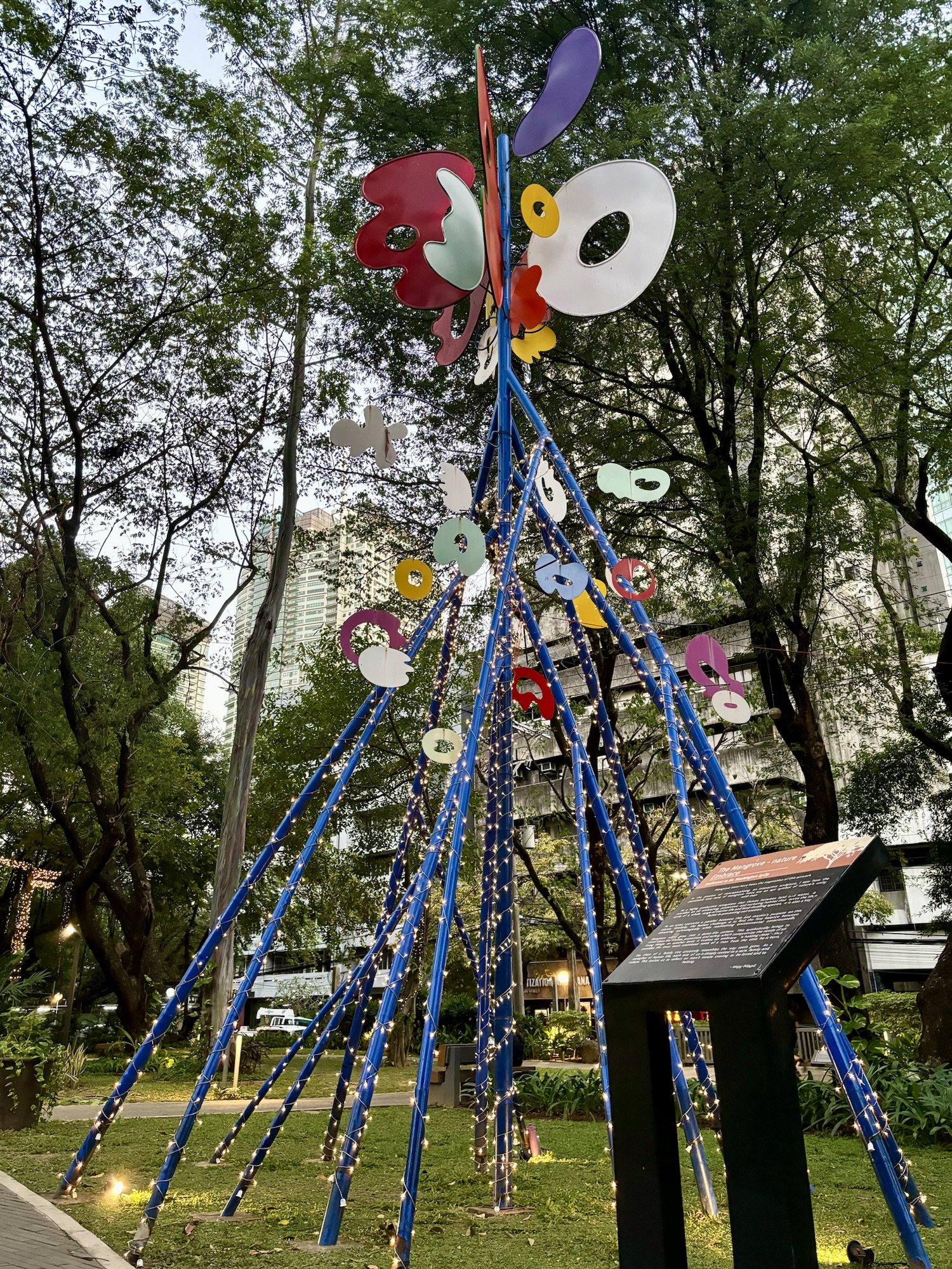One of the highlights of the art walk is this temporary light installation in the central canopy area in Ayala Triangle Gardens. The mix of bright and deep lights evoke warmth, passion, and even the sun.