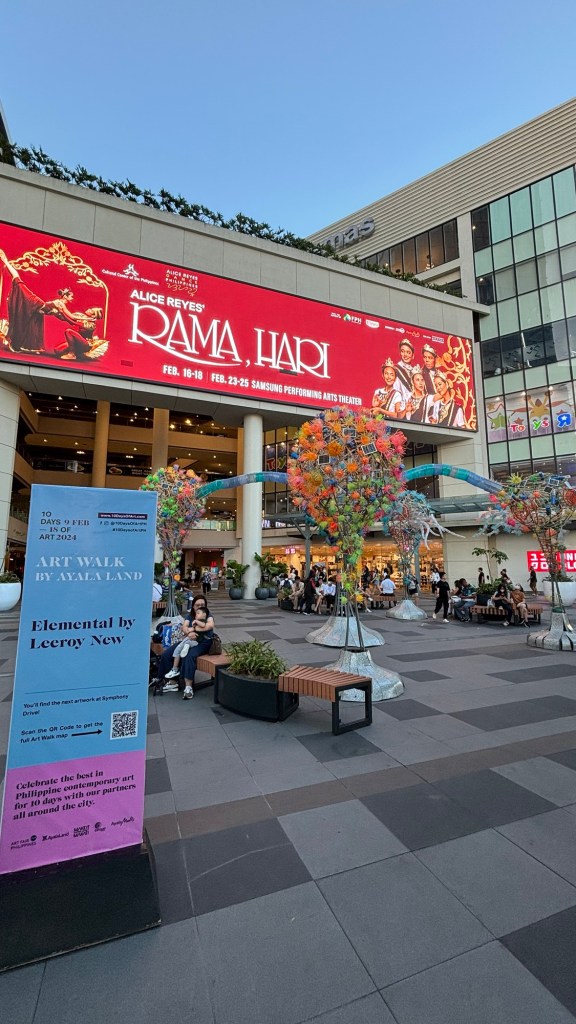 This marks the end of four art-filled weeks of February (though the hunt for art and beautiful things will never end!!!). I managed to squeeze in a few more steps and found Elemental, Leeroy New‘s outdoor art installation at Circuit Makati, which is another official stop to Art Walk 2024. I say “found” like it isn’t smack-dab in the middle of the main driveway, right next to Samsung Performing Arts Theater.