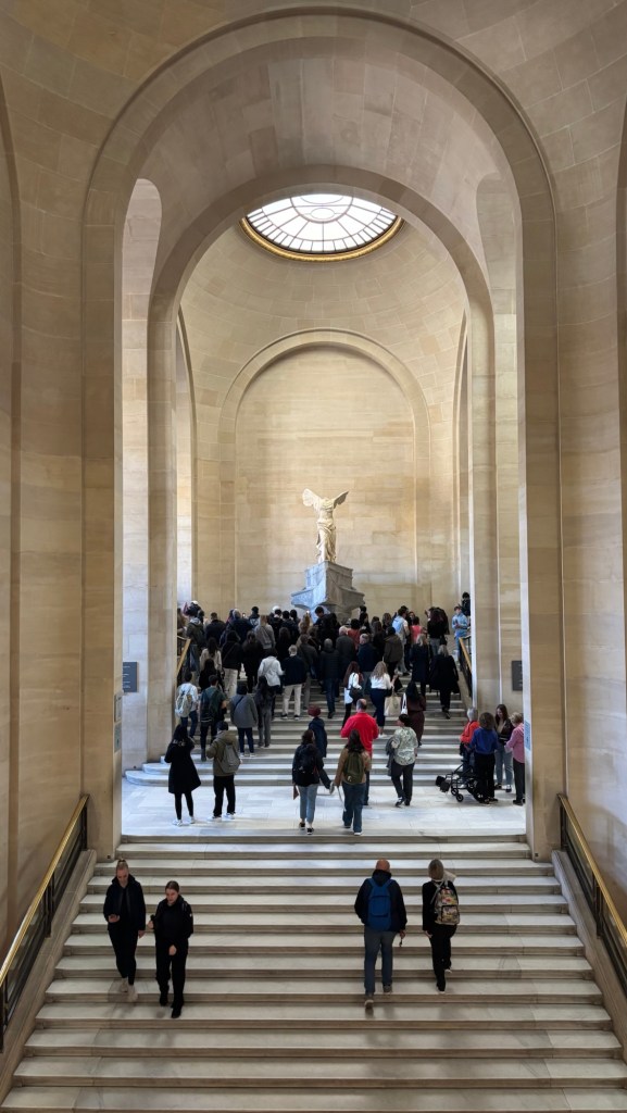 Now I can appreciate the placement and the beauty of the Winged Victory of Samothrace, situated right on top of the grand staircase in the Denon Wing. You can hear the sea as it breaks through the waves for a long-sunken warship.
